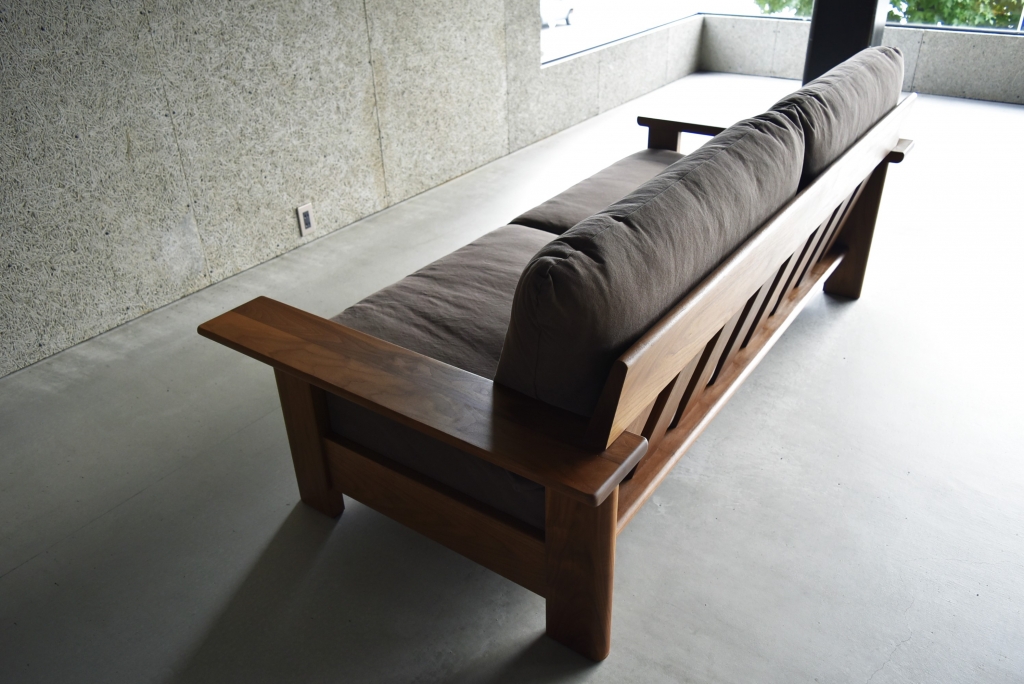 40mm厚の無垢材を贅沢に使ったあたたかみを感じるアームと脚、