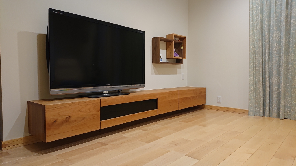 天板と前板は、W2800 木目通しの無垢材であるということ!