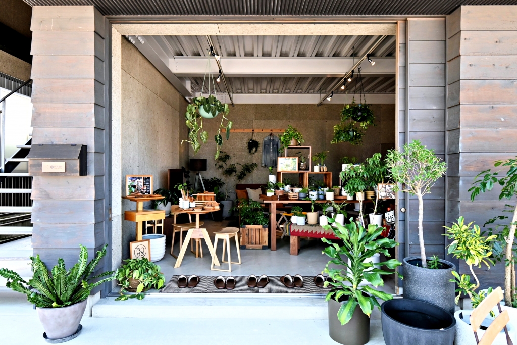 大、中、小、様々な種類の観葉植物が並んでいます。