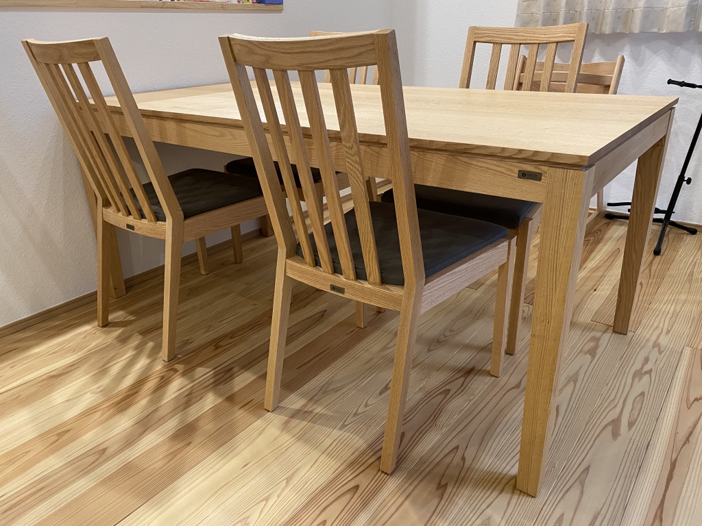 美しいスリットが自慢のダイニングテーブル。