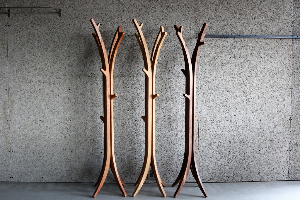 完全に天然木だけで構成されたハンガースタンドに