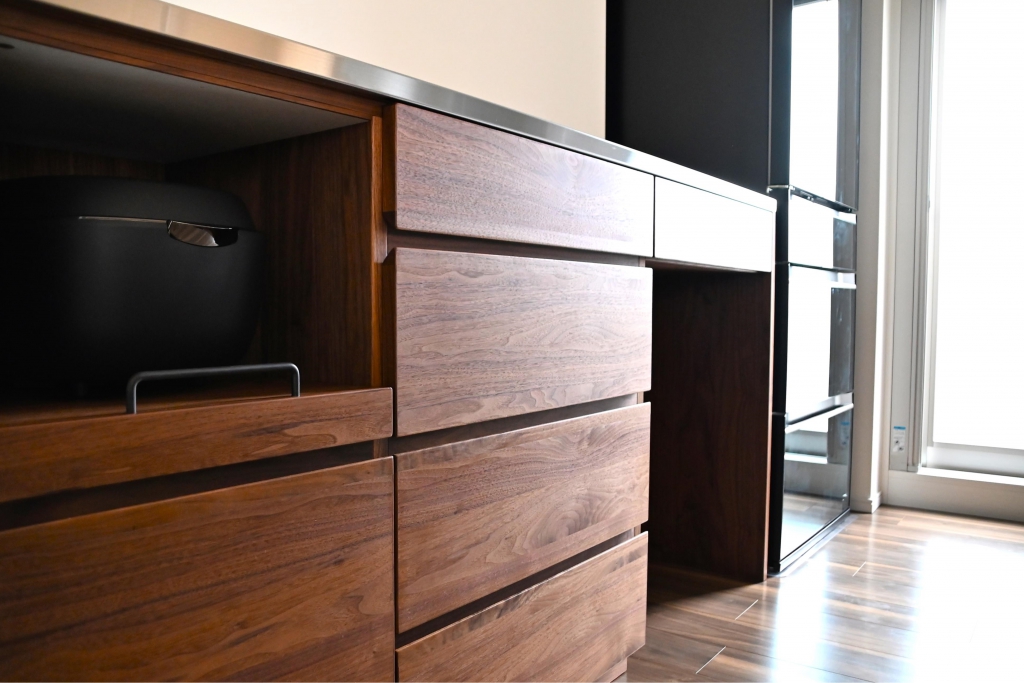 配線の通り道を作り、上にはコンセント口も配置しております。